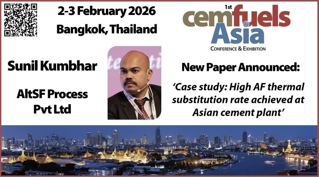 New paper announced for the first Global CemFuels Asia conference in Bangkok, Thailand on 2-3 February 2026! 🌏 'Case study: High AF thermal substitution rate achieved at Asian cement plant' By Sunil Kumbhar, AltSF Process Pvt. Ltd. Register your interest for the conference here